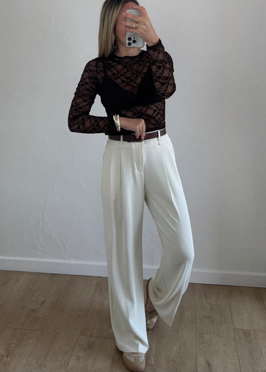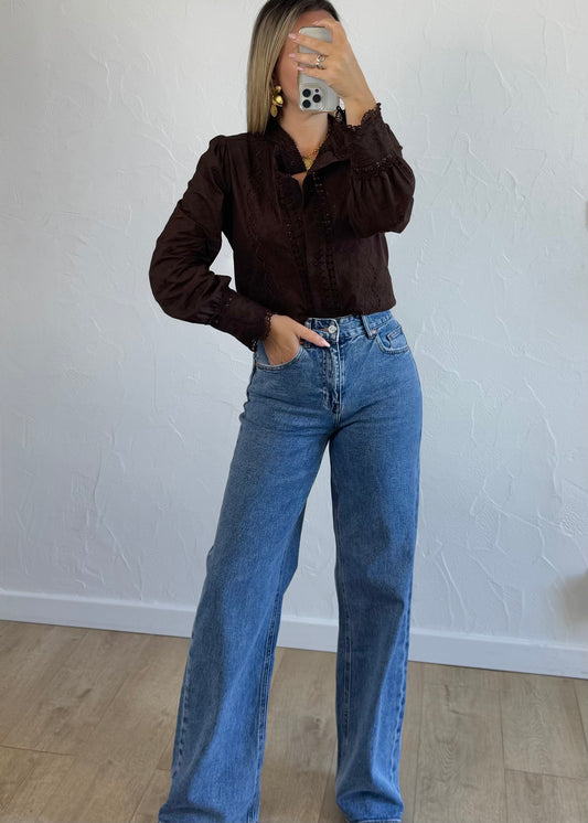 Haut ZANORA Marron en dentelle